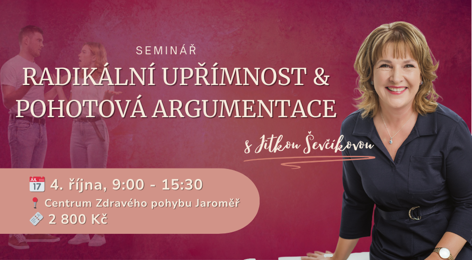 Hotel Kopanice Žítková 160, ŽítkováPřipravili jsme pro Vás prožitkový workshop na Žítkové. Program: čtvrtek 17:00-19:00 Večerní příjezd, večeře 19:00 Seznámení a naladění na skupinu pátek 9:00-12:00 Emoce v době změn ( VUCA svět) 15:00-18:00 Job Crafting (mít rád svou práci i když nás na ní něco štve) sobota 9:00-12:00 Zdravé vztahy, prevence konfliktu 15:00-18:00 Ne-úspěch jako...
